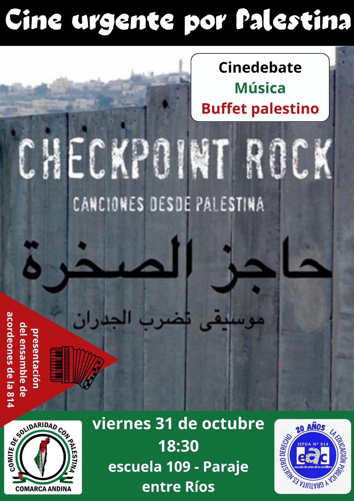 Contaremos con el Ensamble de acordeones de la 814 para un momento musical, y un rico buffet palestino!
